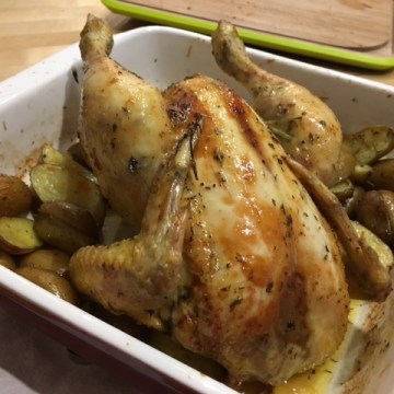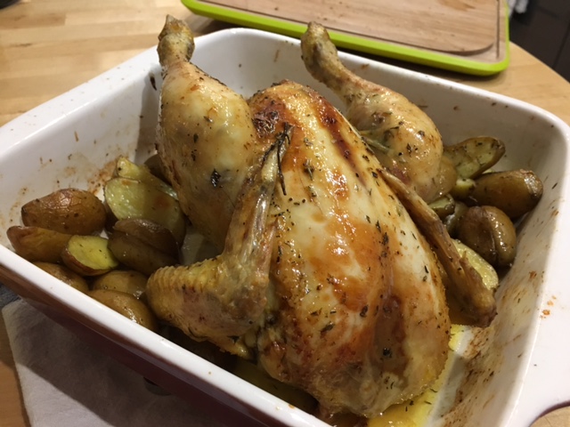 ‘poulet rôti qui sort du four’